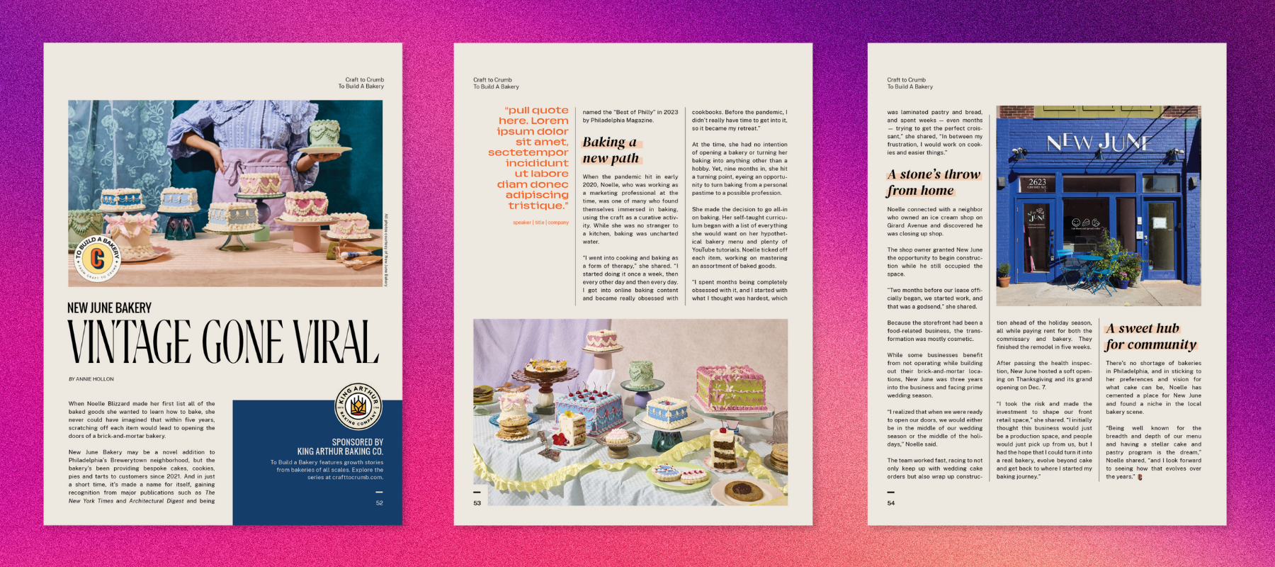 Jordan designs Craft to Crumb’s digital mini-mags. Each issue showcases a notable bakery making waves in the industry, plus insights on consumer trends, business strategies, and more.